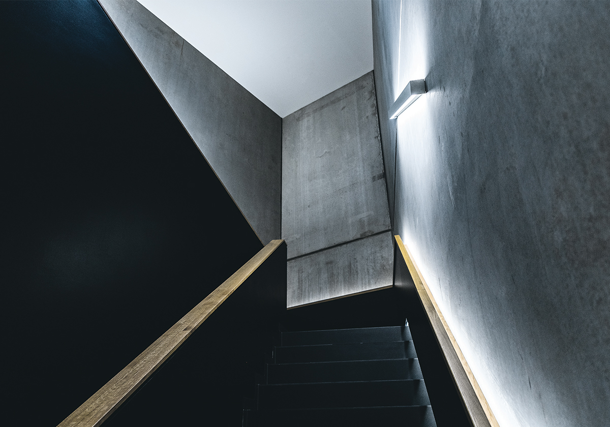 Bei der Grundsanierung der Treppenaufgänge setzten wir LED-Profile zur Beleuchtung ein. Die silbernen Leuchten passen sich perfekt an die angesagten Betonwände und die minimalistische Architektur des Treppenhauses an. Die Profile lenken den Weg über die Treppen, leuchten blendfrei die Stufen aus und sorgen in Kombination mit einem Uplight für eine stimmige Allgemeinbeleuchtung.