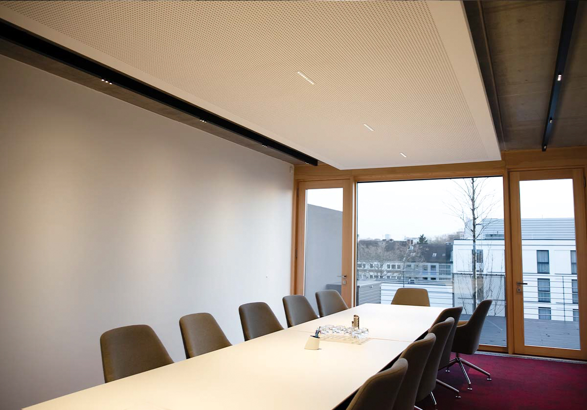 Die Konferenzräume des Architekturbüros in Bochum wurden mit FUSION FF10 und FUSION Linear Profilen in der Anbauvariante von NEKO Lighting ausgestattet. Die FF10 LED Downlights inmitten des Raumes sorgen in Kombination mit dem linearen Profil für eine optimale Ausleuchtung des Raumes. Das minimalistische und geradlinige Design des Fusion Linear Systems von NEKO Lighting fügt sich unaufdringlich in die Architektur ein und verlängert optisch den Raum.