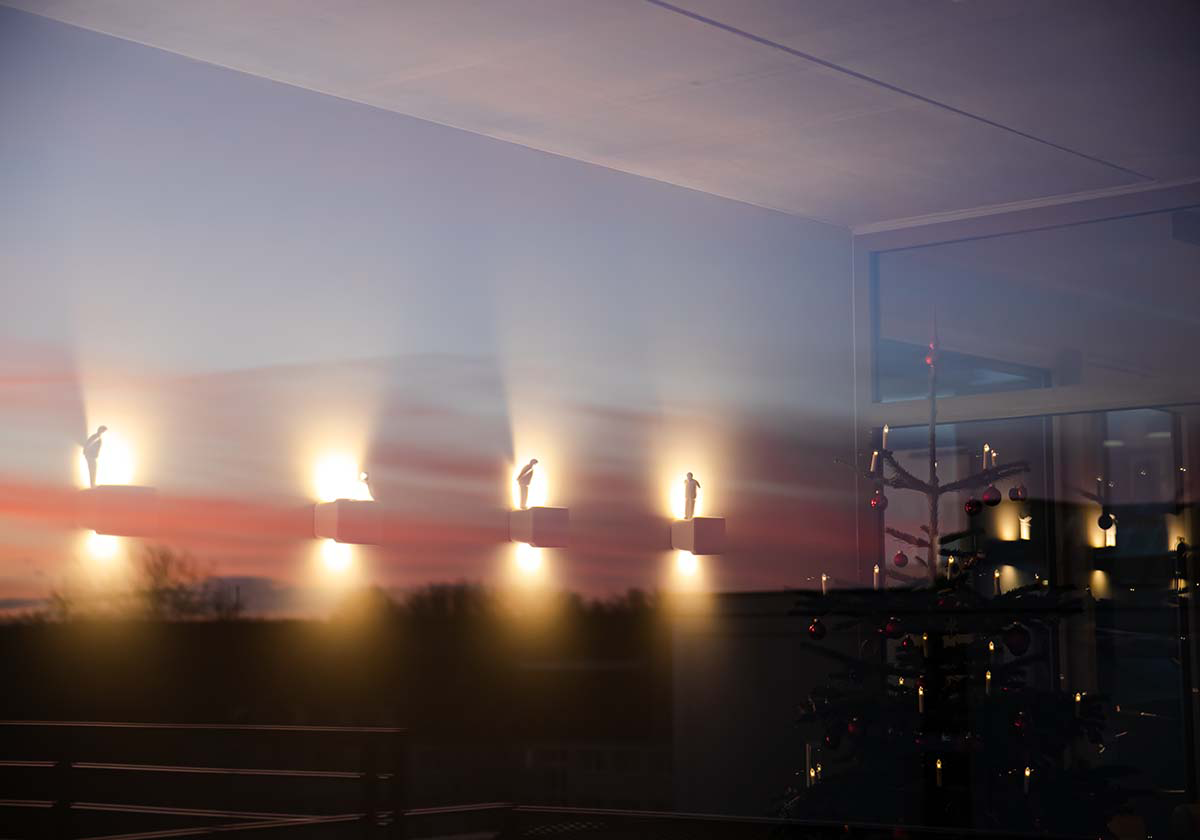 Mit der Designer-Wandleuchte Amsterdam des italienischen Herstellers Karman wurde ein besonderer Hingucker im Eingangsbereich des Architekturgebäudes installiert.