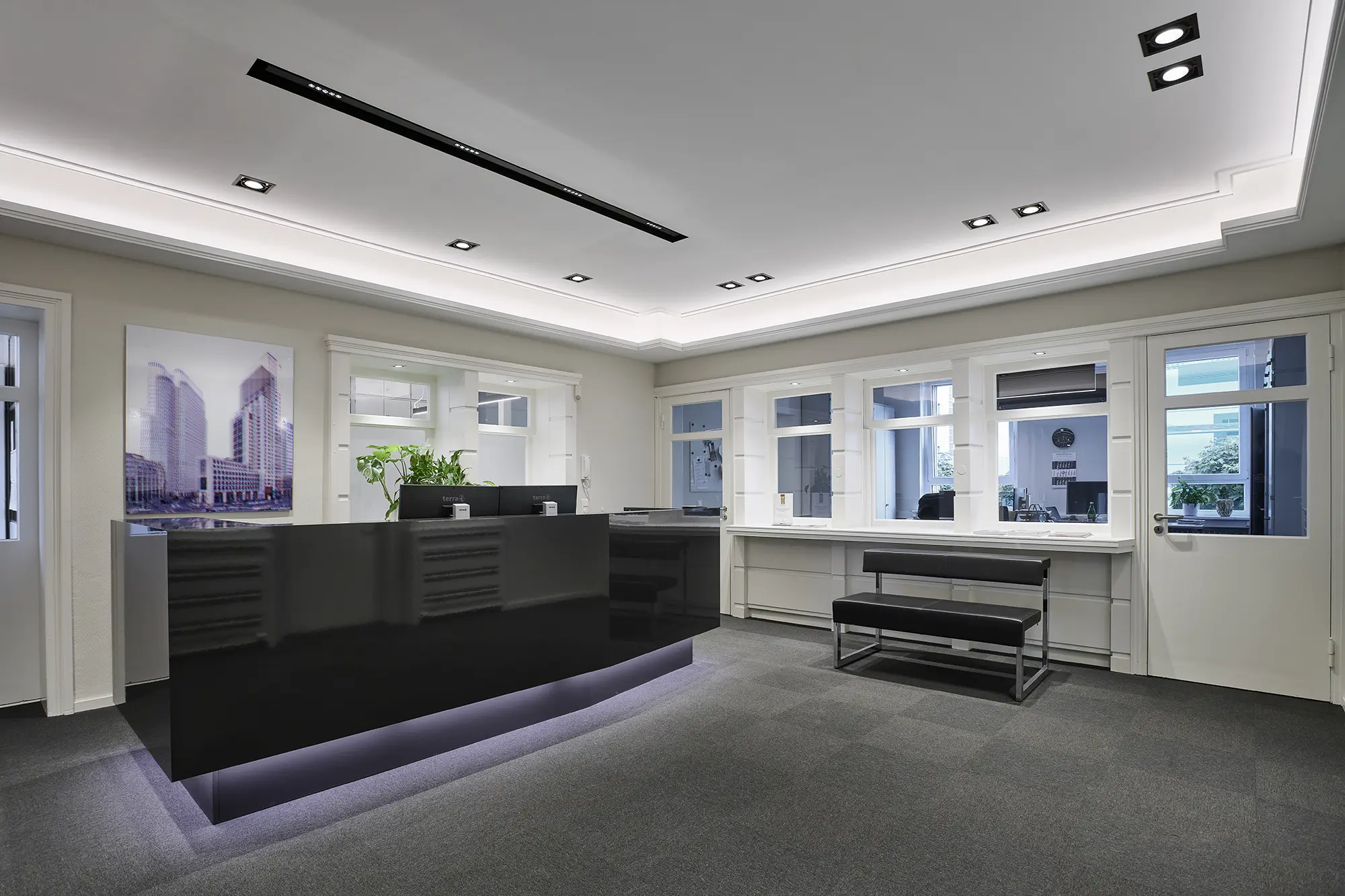 In den Büroräumen von Fredebeul Immobilien sorgt ein neues Lichtkonzept für optimale Arbeitsbedingungen und ein stilvolles Ambiente.