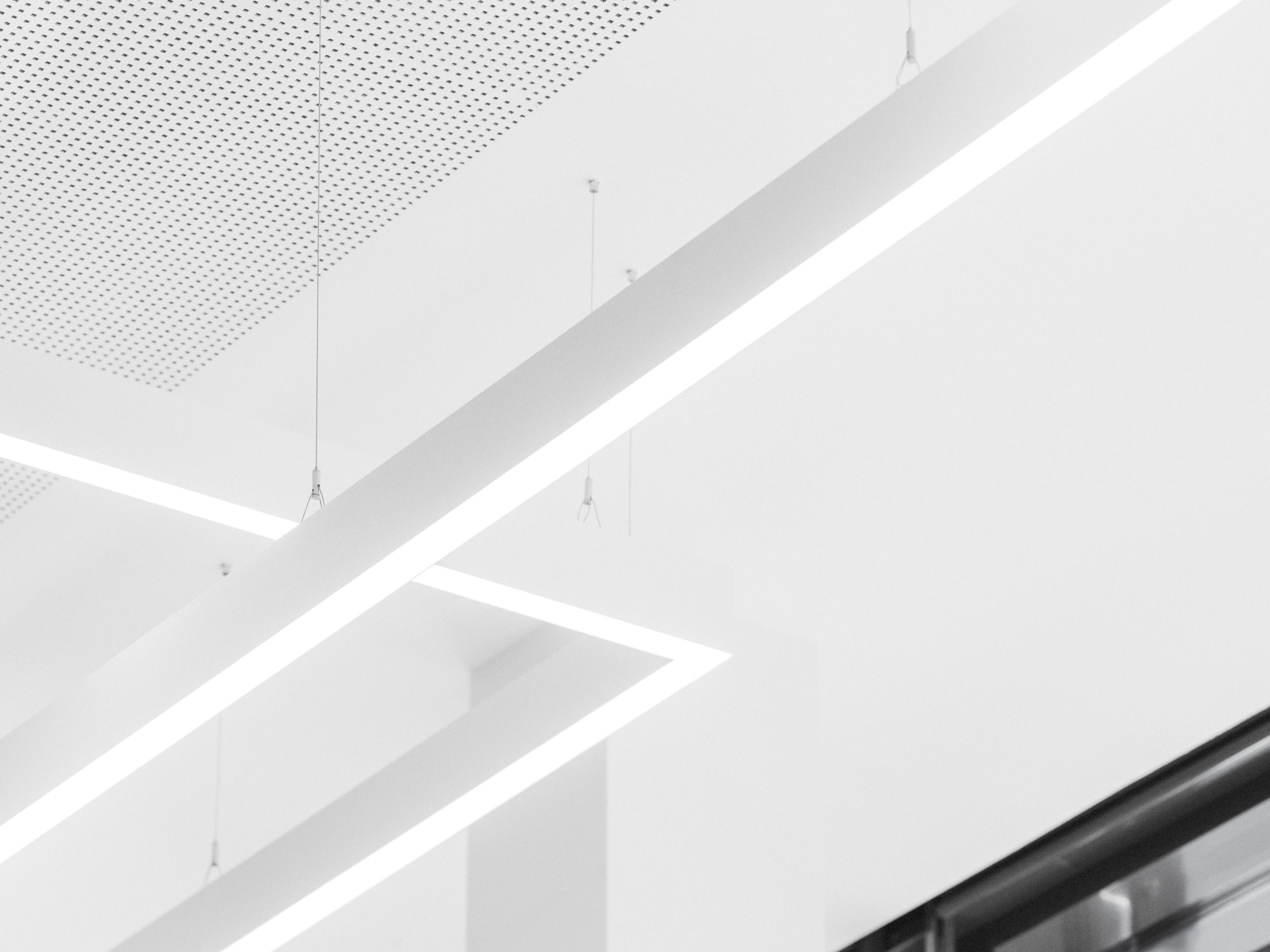 Die Volksbank Bielefeld-Gütersloh erneuerte ihr Gebäude am Kesselbrink und wir lieferten ein flexibles Beleuchtungskonzept. Das Finanzinstitut wurde innen komplett entkernt und die Schalterhalle in einen offenen Servicebereich mit edlem Holz, viel Stahl und rohem Beton umgestaltet. Die offene Lobby wird zu einer neuen Kommunikations- und Erlebniswelt, wobei mlaufend an der Präsentationswand und unter der Galerie Schienenstrahler der Produktserie Midpoint von Lightnet installiert wurden. Die schwarzen Leuchtenkörper integrieren sich unauffällig in das Raumkonzept und lassen sich punktgenau ausrichten, um bei wechselnden Ausstellungen die Exponate immer passend auszuleuchten.