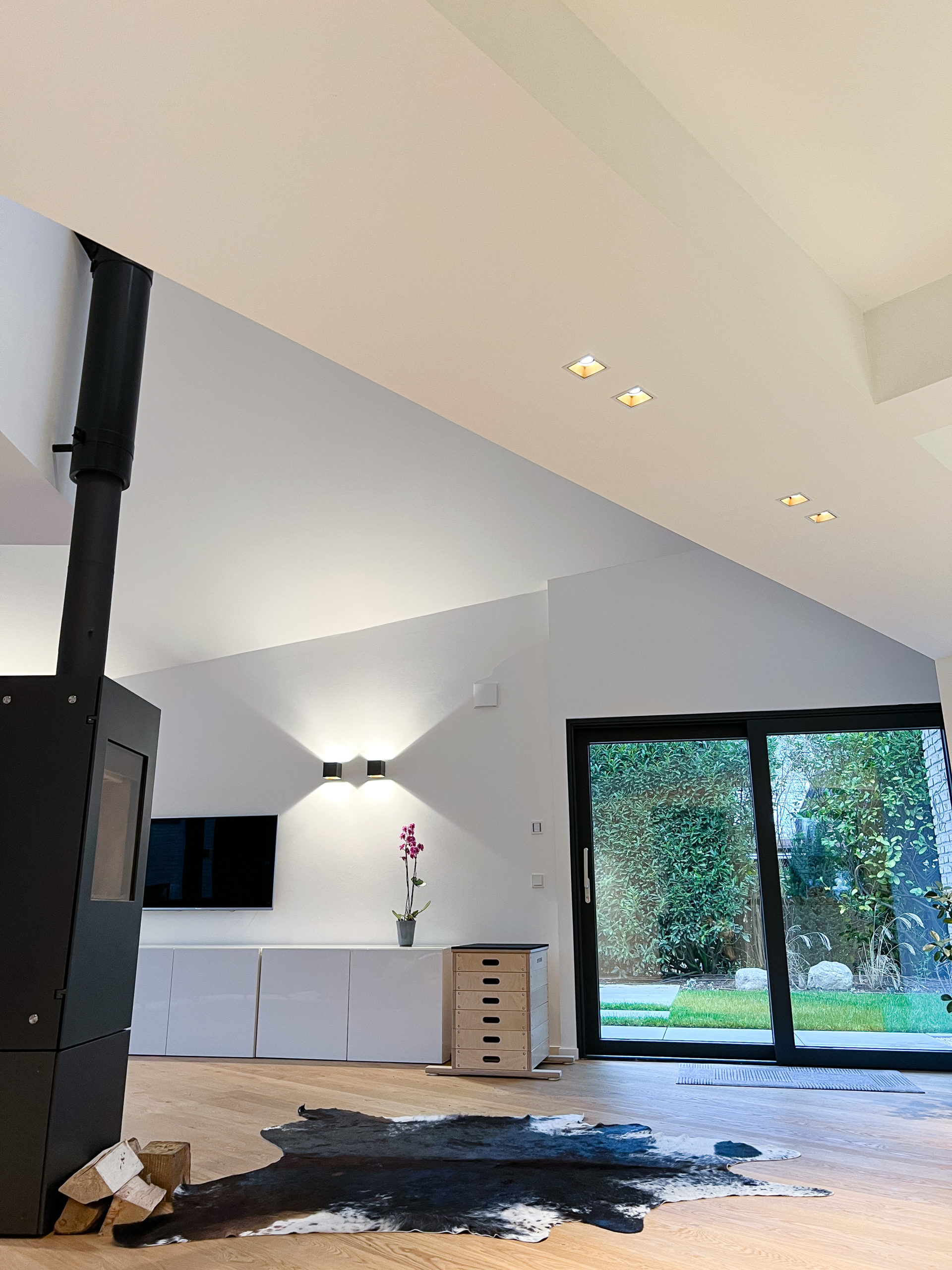 Zur Allgemeinbeleuchtung der drei Badezimmer und Kinderzimmer des Hauses setzen wir indirekt-warm strahlende Lichtvouten ein. Diese sorgen für ein blendfreies und entspanntes Lichterlebnis.