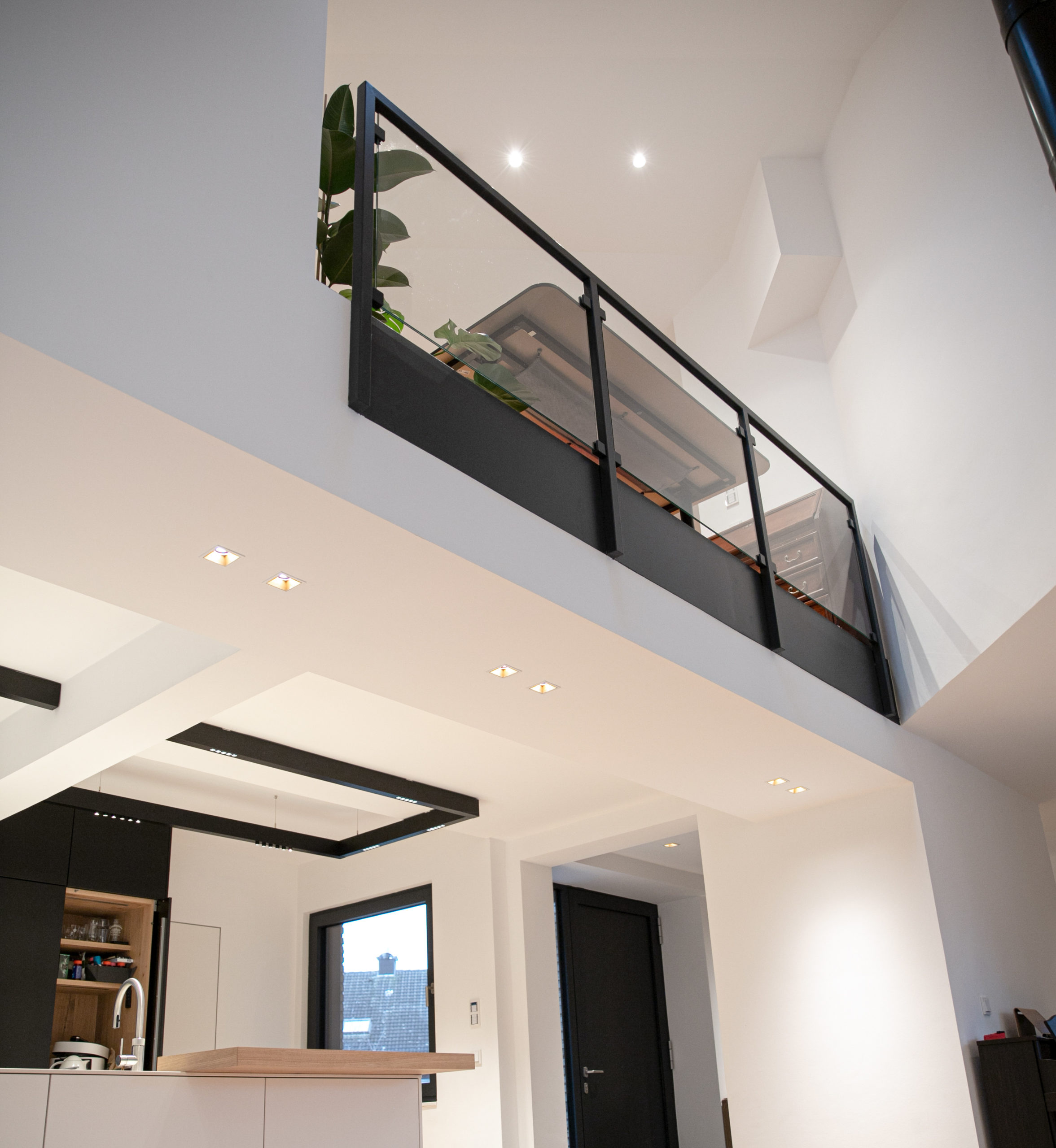 Das perfekt an die Gegebenheiten der Architektur angepasste Lichtkonzept eines Privathauses in Münster schafft optimale Sehbedingungen und eine heimische Atmosphäre. Für eine ebenmäßige Grundausleuchtung des Hauses sorgen Venezia Architech Downlights und die modulare CLUB Downlight Serie von NEKO Lighting. Das weiße Gehäuse der Downlights passt sich perfekt an die Architektur und das weiße Deckenbild an. Der goldene Reflektor der CLUB setzt gezielt edle Farbakzente. Das Zusammenspiel des Farb- und Lichtkonzepts sowie der Möblierung des Hauses schafft eine reine und moderne Raumwirkung.